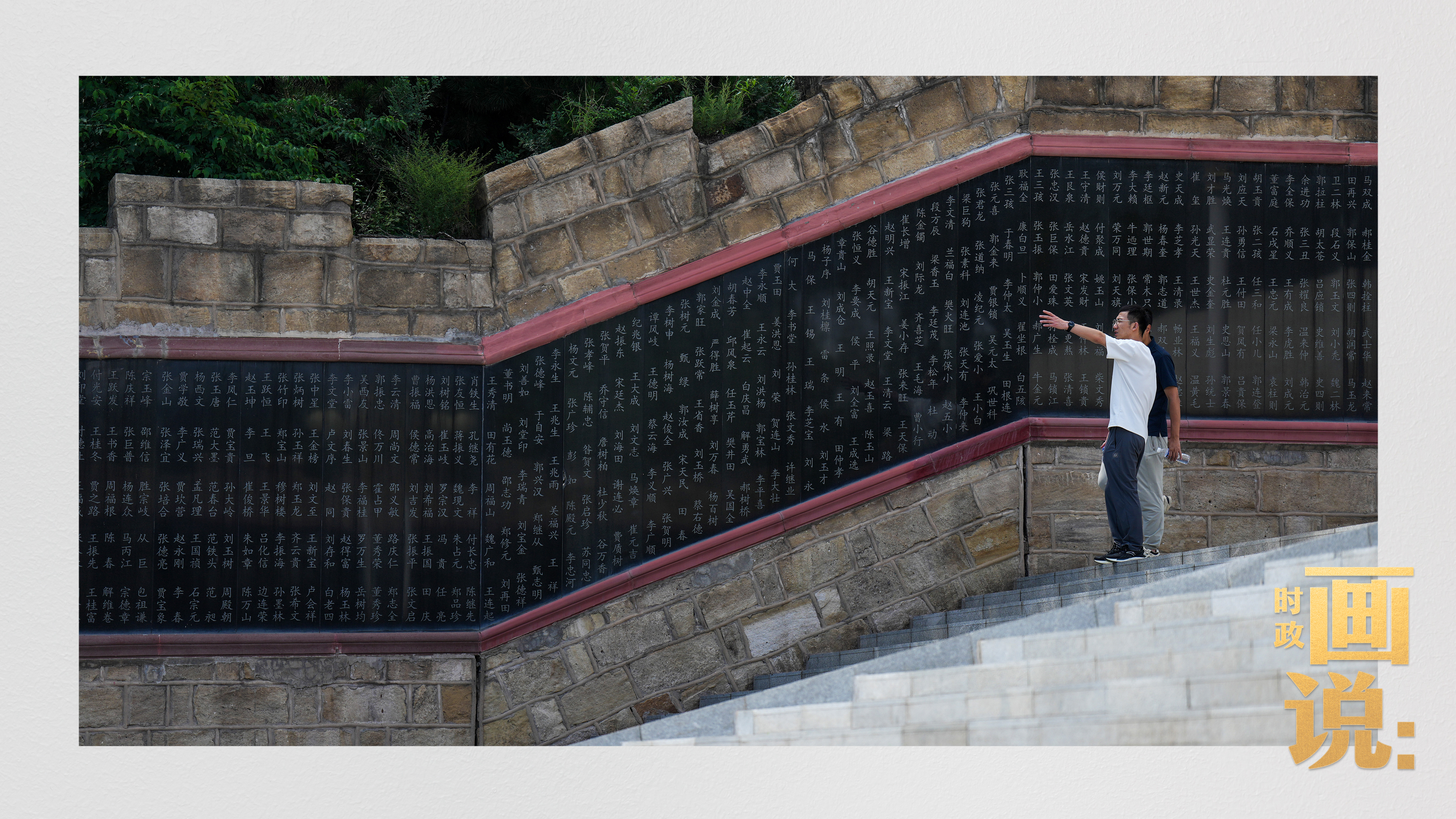 百團大戰(zhàn)紀(jì)念碑廣場一側(cè)的石壁上,鐫刻著在這場戰(zhàn)役中犧牲的革命烈士名錄。