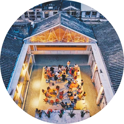 2015年,李繼津和合伙人看上了塘口舊墟兩處建筑,“原先是舊糧倉(cāng)周邊的五金廠、鐘表廠,雖然建筑很舊,但很有設(shè)計(jì)感,而且舊墟與周圍的村子距離很近,有做社區(qū)改造的潛力?!闭f(shuō)干就干,舊工廠逐漸被改造為時(shí)尚的青年社區(qū)空間——“塘口空間”,餐廳、青年旅舍、劇場(chǎng)、活動(dòng)空間等一應(yīng)俱全,舊工廠里原有的一些制造機(jī)械作為歷史記憶的“載體”也被保留下來(lái)。“建筑不能脫離鄉(xiāng)村。”李繼津說(shuō)。