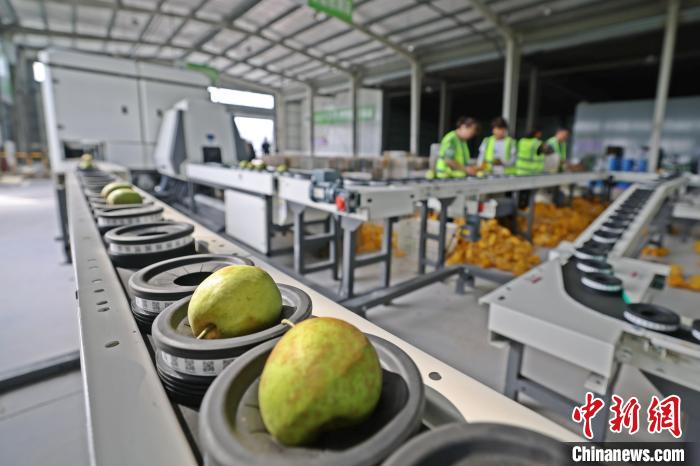在鎮(zhèn)上新建的百里洲砂梨智慧產(chǎn)業(yè)園,園內(nèi)的精細(xì)化檢測分選設(shè)備令人眼前一亮:自動(dòng)化分選線上,每顆砂梨都要通過“X光體檢”,重量、糖度、黑心等內(nèi)部指標(biāo)合格方能進(jìn)入包裝環(huán)節(jié)。