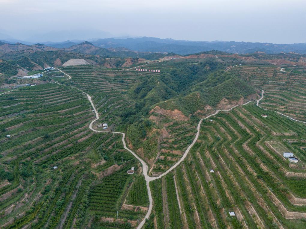 這是7月4日拍攝的阜平縣高效林果產(chǎn)業(yè)示范園區(qū)(無人機(jī)照片)。新華社記者 李鑫 攝