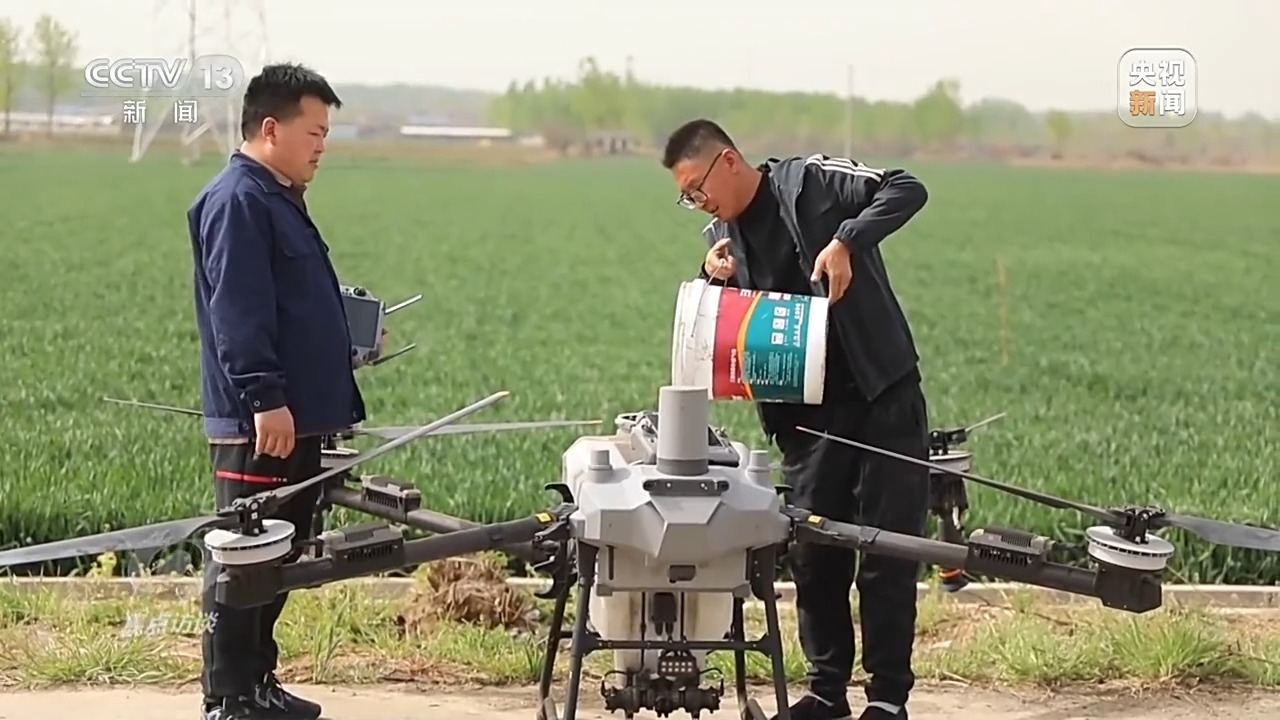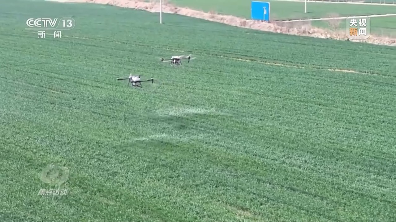 5月17日,40攝氏度高溫天氣到來的前兩天,當(dāng)?shù)囟鄠€小麥主產(chǎn)縣,一臺臺植保無人機低空掠過綠浪翻滾的麥穗,噴灑出細(xì)密的“藥雨、肥雨”,為久旱的麥田送來了及時雨。
