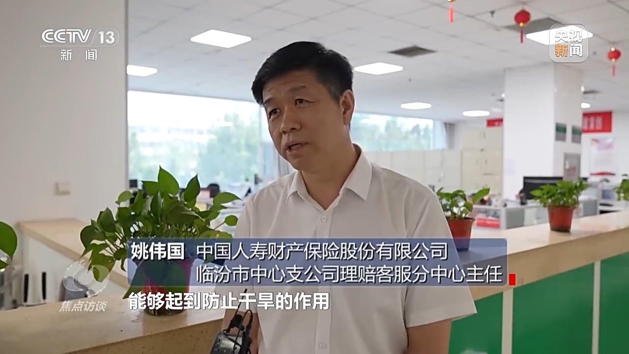 中國人壽財產(chǎn)保險股份有限公司臨汾市中心支公司理賠客服分中心主任 姚偉國:沒有想到把肥料噴到葉子上能起到防止干旱的作用,我們當(dāng)時想著他們是不是和第三方合作來騙保,并不能起到防災(zāi)的作用。