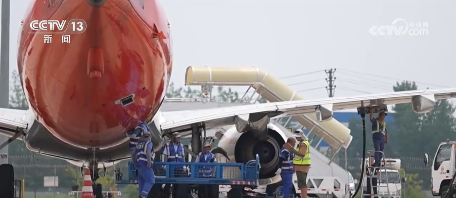 7月16日上午,成都市氣象臺(tái)發(fā)布了高溫紅色預(yù)警信號(hào),多地最高氣溫超過(guò)40℃。在成都雙流國(guó)際機(jī)場(chǎng)的停機(jī)坪,地表溫度甚至逼近50℃。在這樣的酷熱中,為保障暑期客貨運(yùn)航班運(yùn)輸安全有序,機(jī)場(chǎng)一線的地勤人員頂著高溫堅(jiān)守崗位,通過(guò)倒班協(xié)作,保障暑期運(yùn)輸。