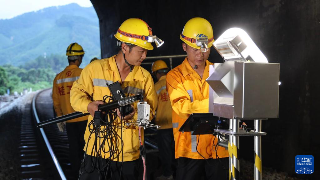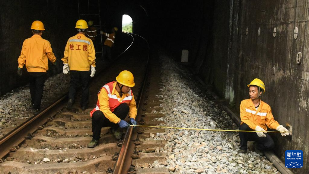 暑運(yùn)期間,在湘桂鐵路(廣西段)沿線,國(guó)鐵南寧局桂林工務(wù)段13名橋隧工人日夜穿梭于桂北的崇山峻嶺間,對(duì)管段內(nèi)的10座隧道、1075座涵洞進(jìn)行多維度巡檢、排查隱患,確保湘桂鐵路線上暑運(yùn)客貨列車(chē)的安全運(yùn)行。