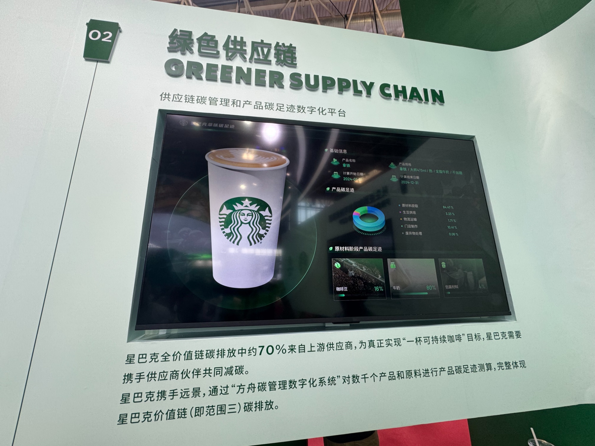在第三屆鏈博會上,星巴克展示的綠色供應(yīng)鏈。(央廣財經(jīng)記者黃昂瑾 攝)