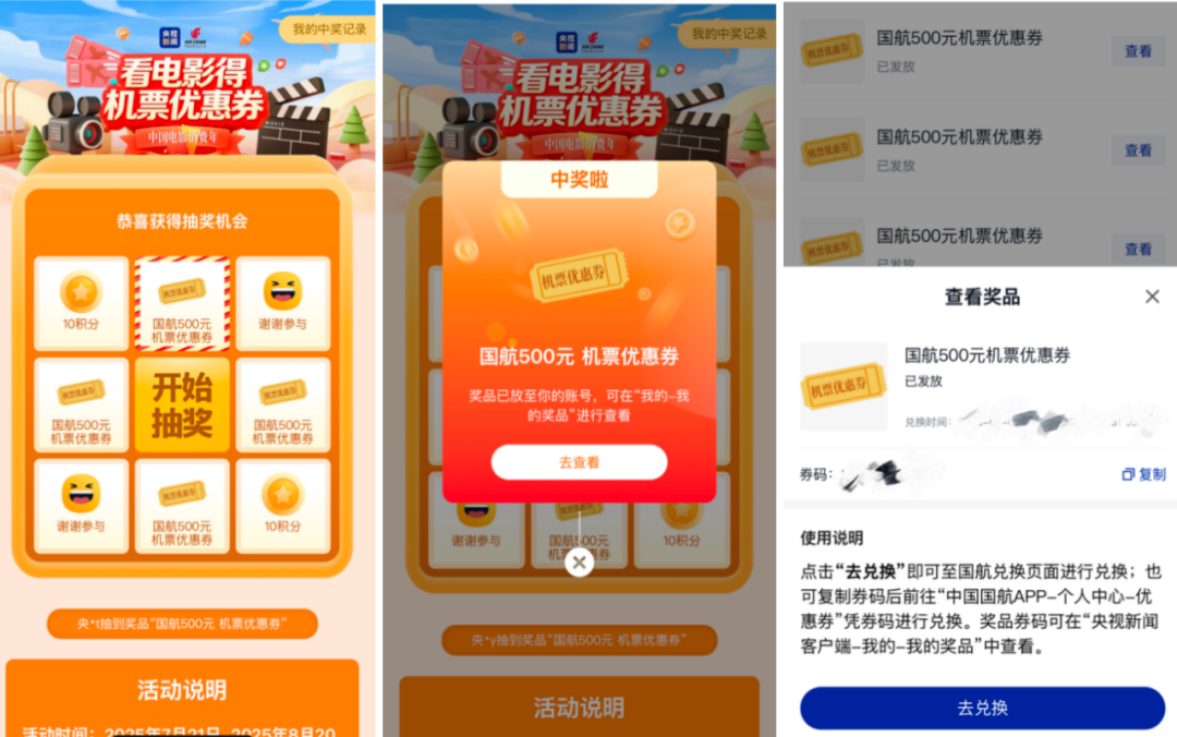 買(mǎi)電影票抽機(jī)票代金券開(kāi)搶