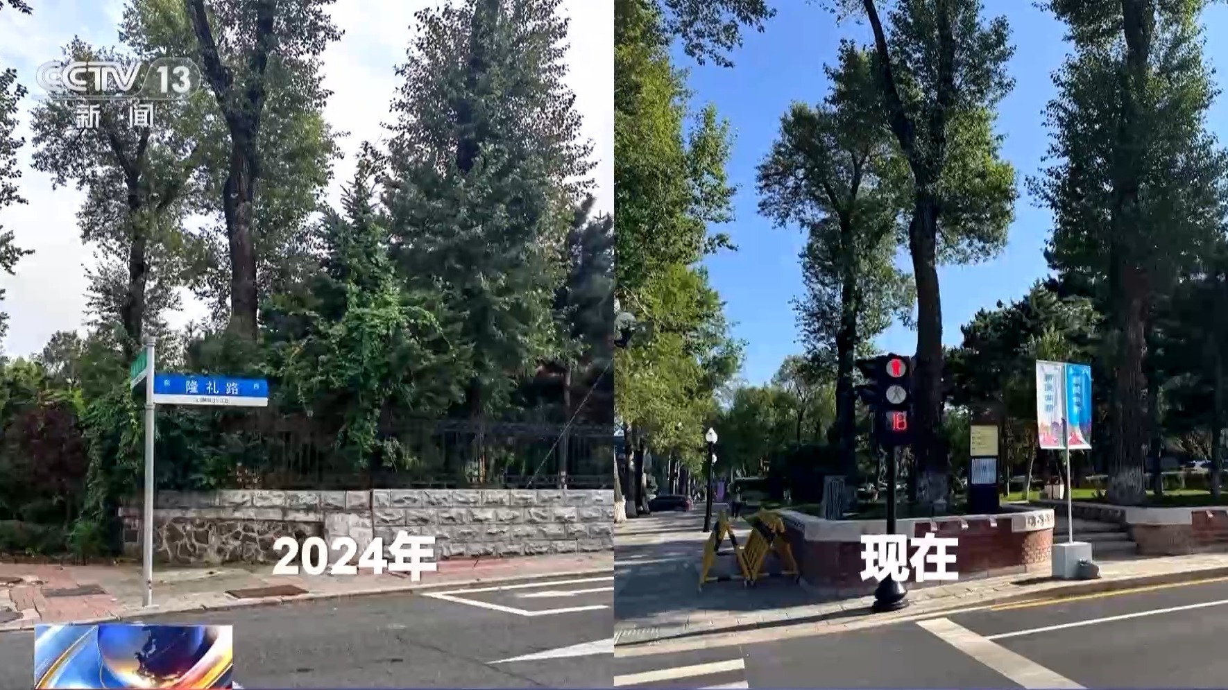 長春市文化廣播電視和旅游局局長 張輝勇:原來的圍墻直接立到了現(xiàn)在的人行道邊,人行道邊還有綠籬,實(shí)際上這條街能夠用于行走的空間是非常有限的。這一條街上13個院落也是13個產(chǎn)權(quán)單位,把這13個院落的圍墻給它打開。