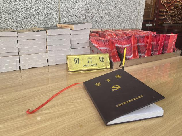 “我們每天平均接待觀眾2000多人,不少人喜歡把自己參觀完的感受寫在留言冊上?!迸碚嫔紧咧泄蔡Р颗f址紀(jì)念館館長郭志軍介紹,每年的6-8月是參觀高峰,一些參觀者在結(jié)束觀展后,將自己的感觸寫到留言冊上,留言的方式也各不相同,有的用書法,有的畫畫,都在表達對祖國和山西的祝福。