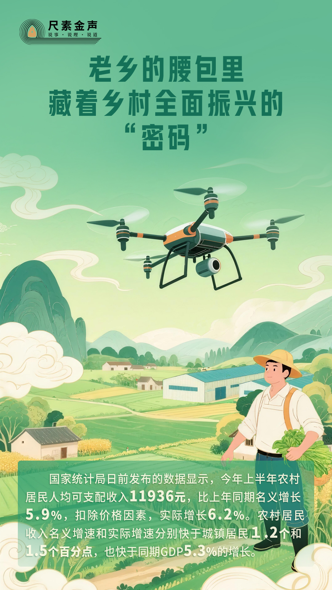 今年上半年農(nóng)民收入數(shù)據(jù)中還有一個值得關注,就是城鄉(xiāng)居民人均可支配收入之比由上年同期的2.45降至2.42。城鄉(xiāng)融合發(fā)展,要持續(xù)縮小城鄉(xiāng)居民收入差距,關鍵在于持續(xù)提高農(nóng)村居民收入。推動農(nóng)民收入持續(xù)穩(wěn)定增長,不僅有助于促進共同富裕,也有助于暢通城鄉(xiāng)經(jīng)濟循環(huán)。