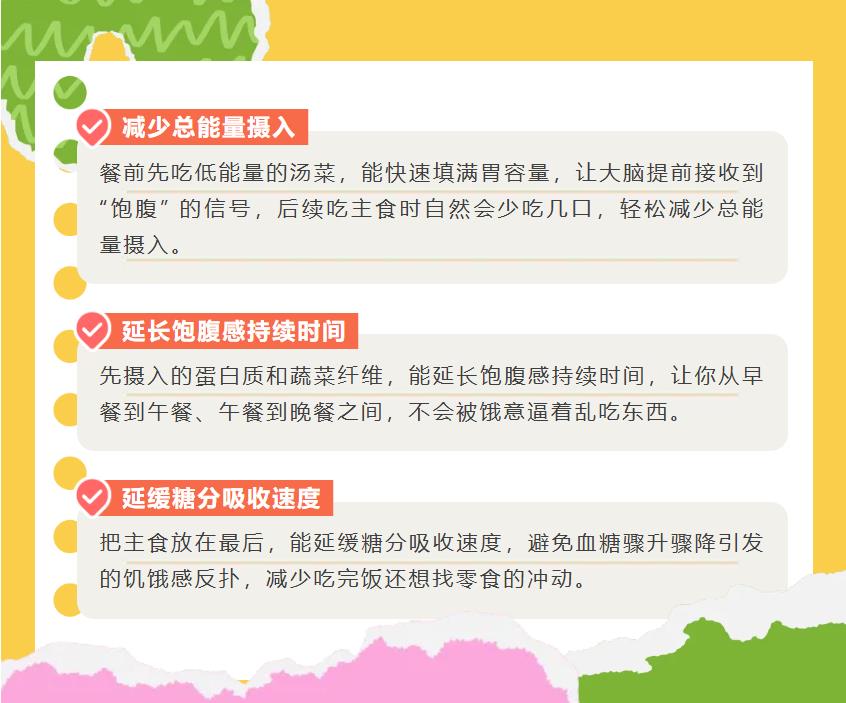 你知道嗎?吃飯時(shí)先吃什么、后吃什么,其實(shí)對健康影響不??!合理的飲食順序,能幫助我們更好地消化吸收、穩(wěn)定血糖,還能控制體重。