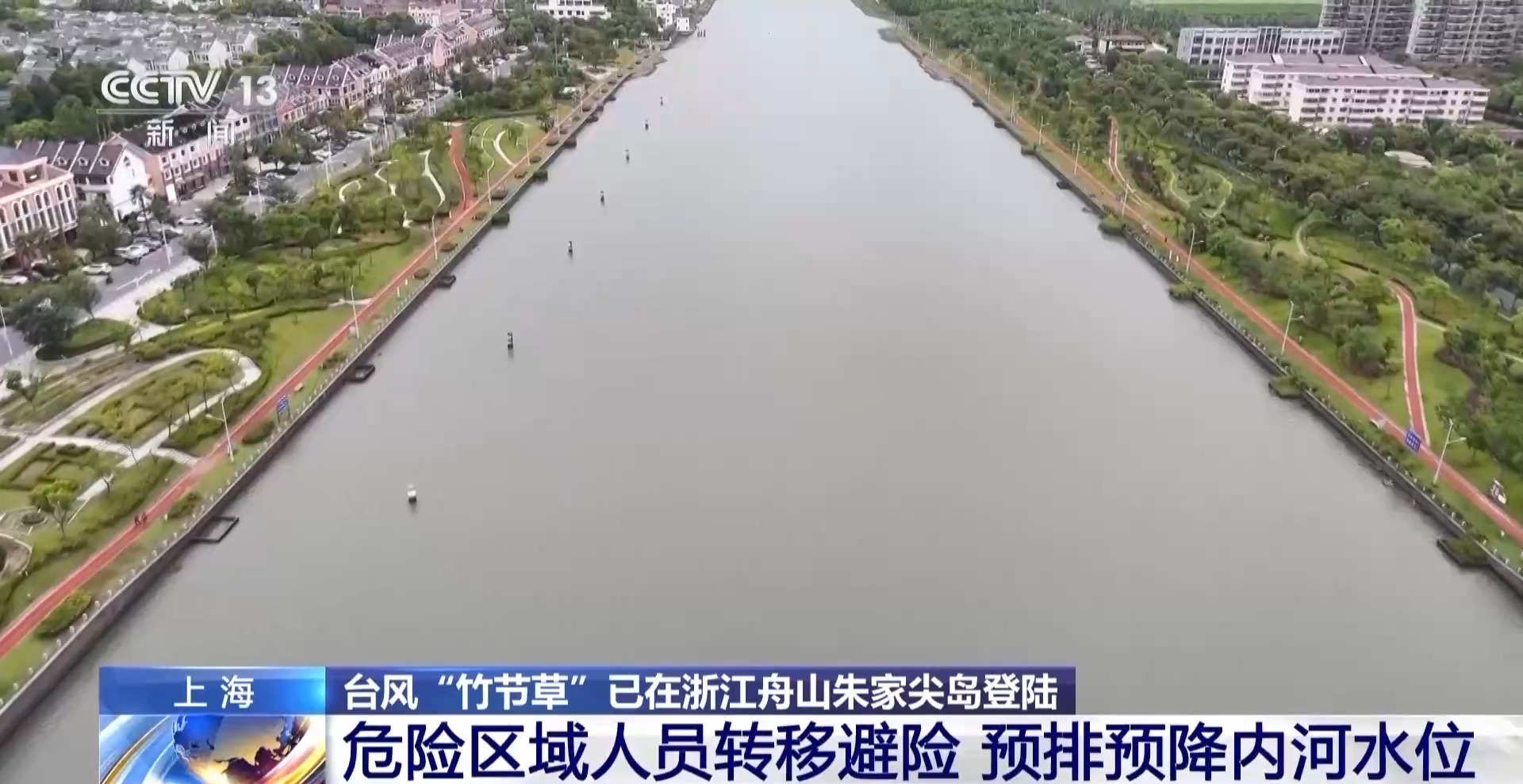 總臺(tái)記者 張寄予:為應(yīng)對(duì)臺(tái)風(fēng)“竹節(jié)草”,上海市奉賢區(qū)金匯港南閘會(huì)進(jìn)行開(kāi)閘排水工作。這里一邊是內(nèi)河,一邊是杭州灣,當(dāng)海水落潮的時(shí)候,海水水平面低于內(nèi)河水平面時(shí),就會(huì)開(kāi)啟閘口,利用水位落差自然排水。