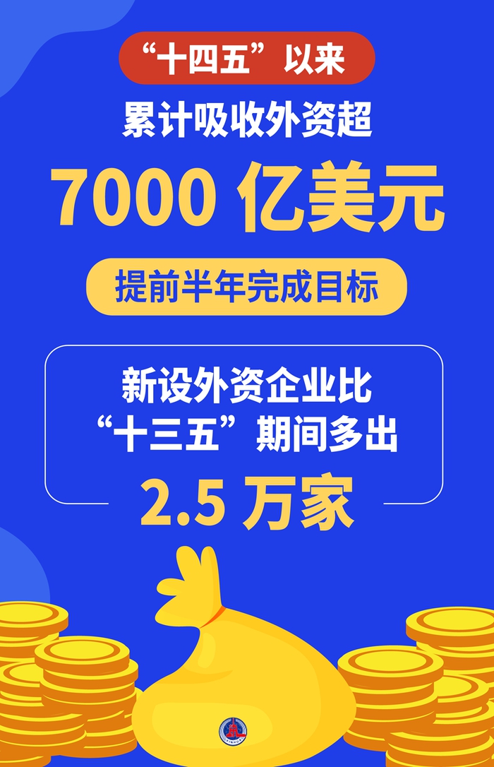 復(fù)雜嚴(yán)峻的國際經(jīng)貿(mào)環(huán)境下,我國吸引外資交出亮眼答卷——“十四五”以來,累計(jì)吸收外資超7000億美元,提前半年完成目標(biāo),新設(shè)外資企業(yè)比“十三五”期間多出2.5萬家。