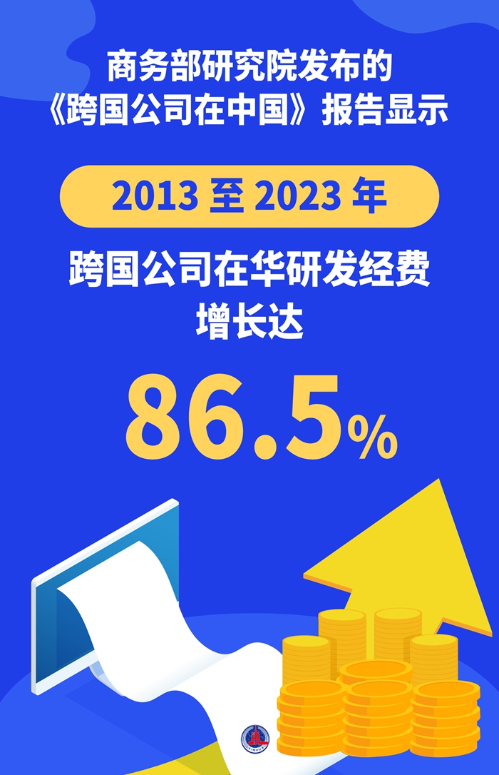商務(wù)部研究院發(fā)布的《跨國公司在中國》報(bào)告顯示,2013至2023年,跨國公司在華研發(fā)經(jīng)費(fèi)增長達(dá)86.5%??鐕九c中國的投資合作已由“市場導(dǎo)向型”“成本導(dǎo)向型”延伸至“創(chuàng)新驅(qū)動型”。
