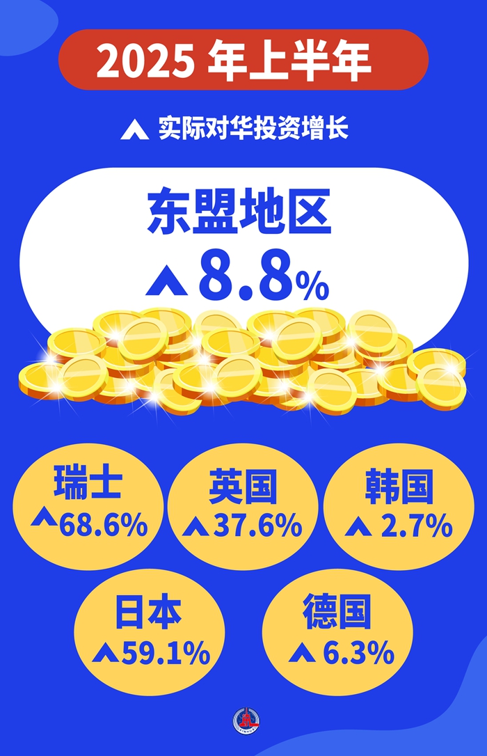 開放合作是歷史潮流,互利共贏是人心所向。今年上半年,東盟地區(qū)實(shí)際對華投資增長8.8%,瑞士、日本、英國、德國、韓國實(shí)際對華投資分別增長68.6%、59.1%、37.6%、6.3%、2.7%。