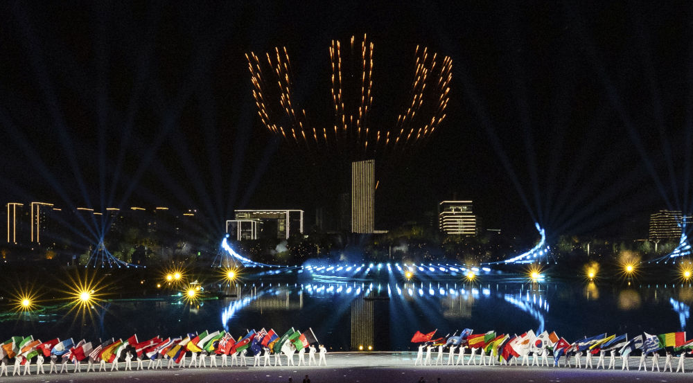 8月7日,演員在開幕式現(xiàn)場表演。新華社記者 杜子璇 攝