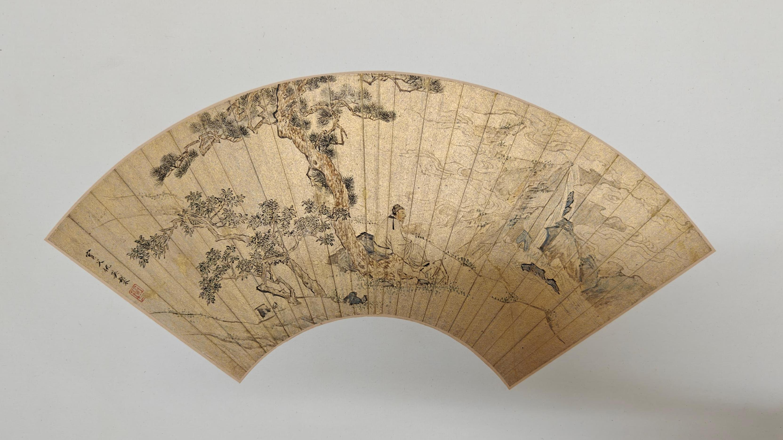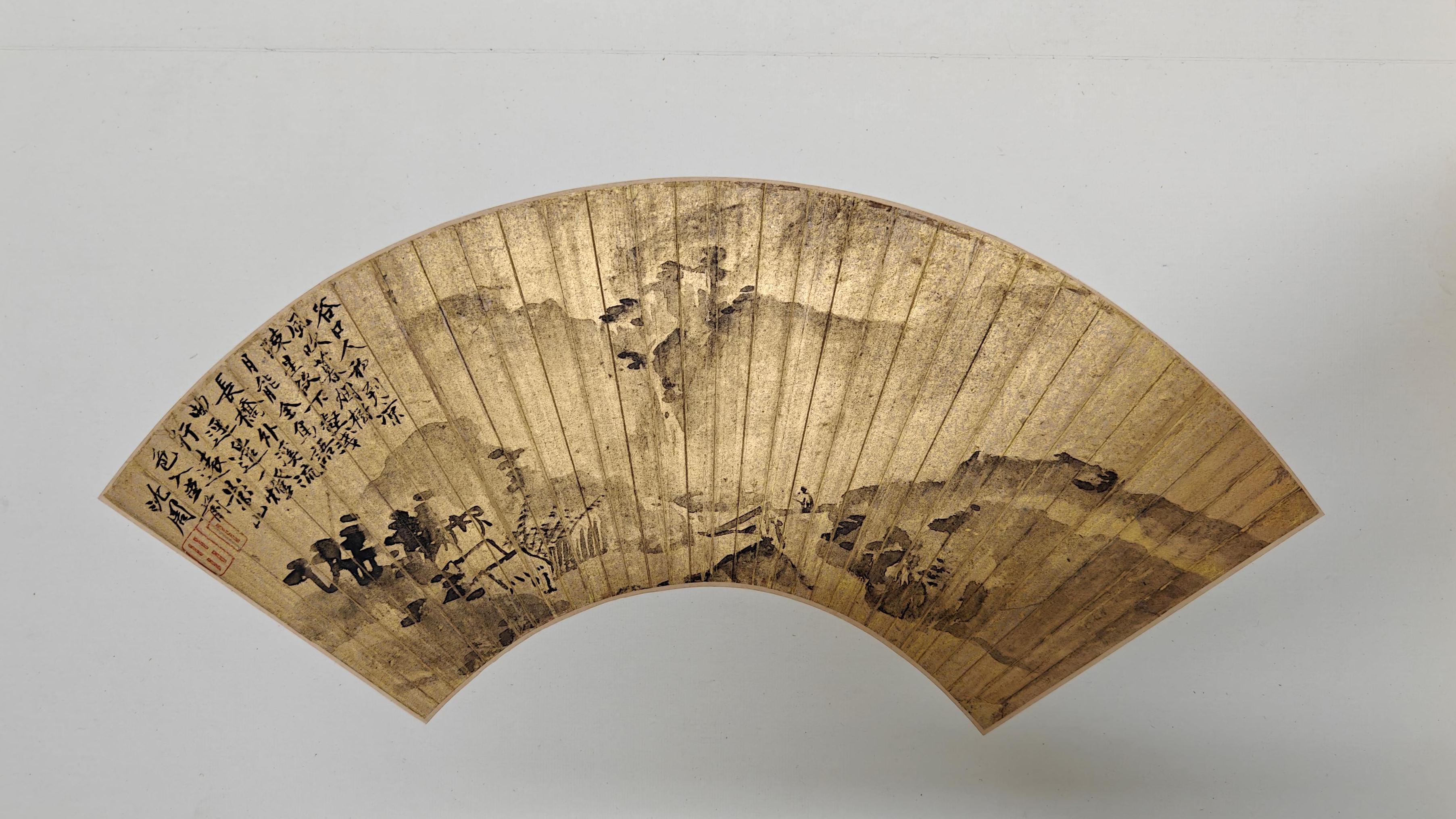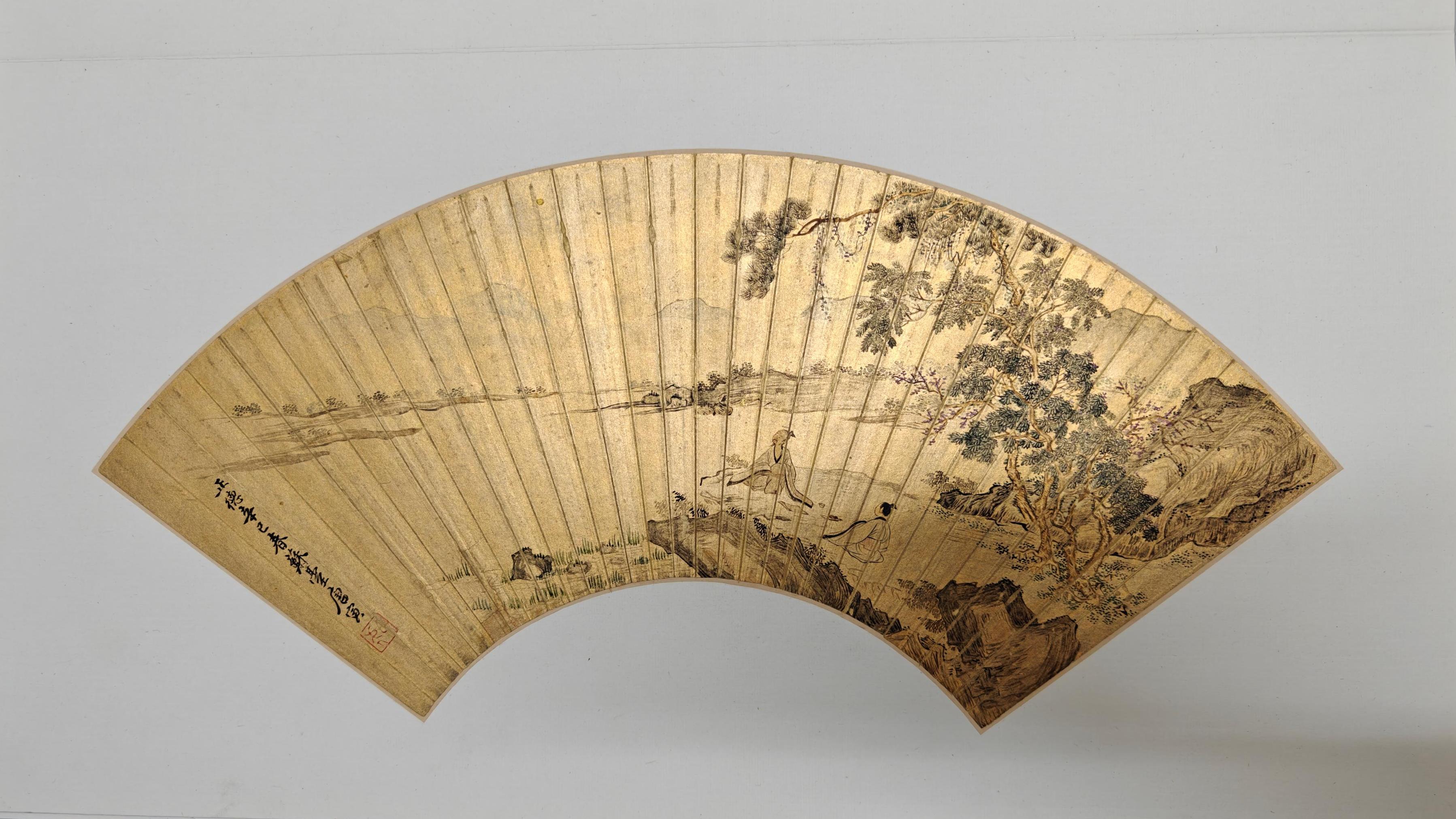 山水畫在金箋扇面上更顯匠心
