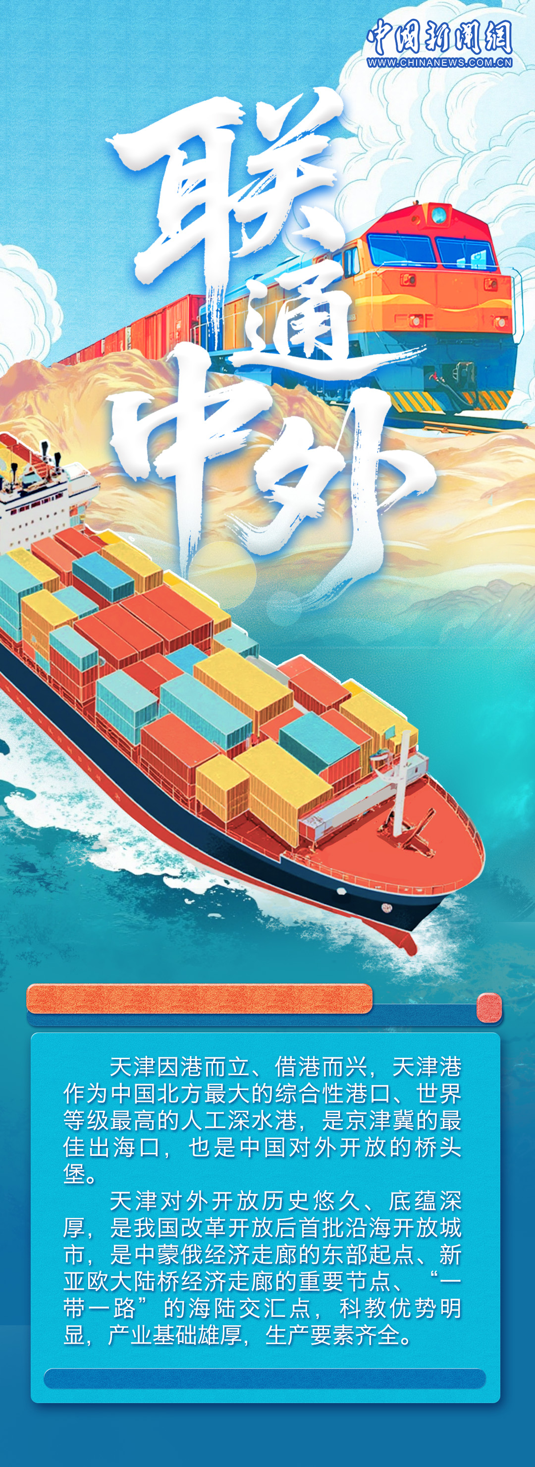 天津文化底蘊(yùn)厚重,有著悠久的商業(yè)文化和航運(yùn)文化,作為中國首批沿海開放城市,依港而生、向海而生。上合組織峰會將于8月31日至9月1日在天津舉辦,上合進(jìn)入“天津時(shí)間”,世界期待“上合智慧”。一組海報(bào),帶你領(lǐng)略天津的開放風(fēng)采與澎湃動(dòng)能。