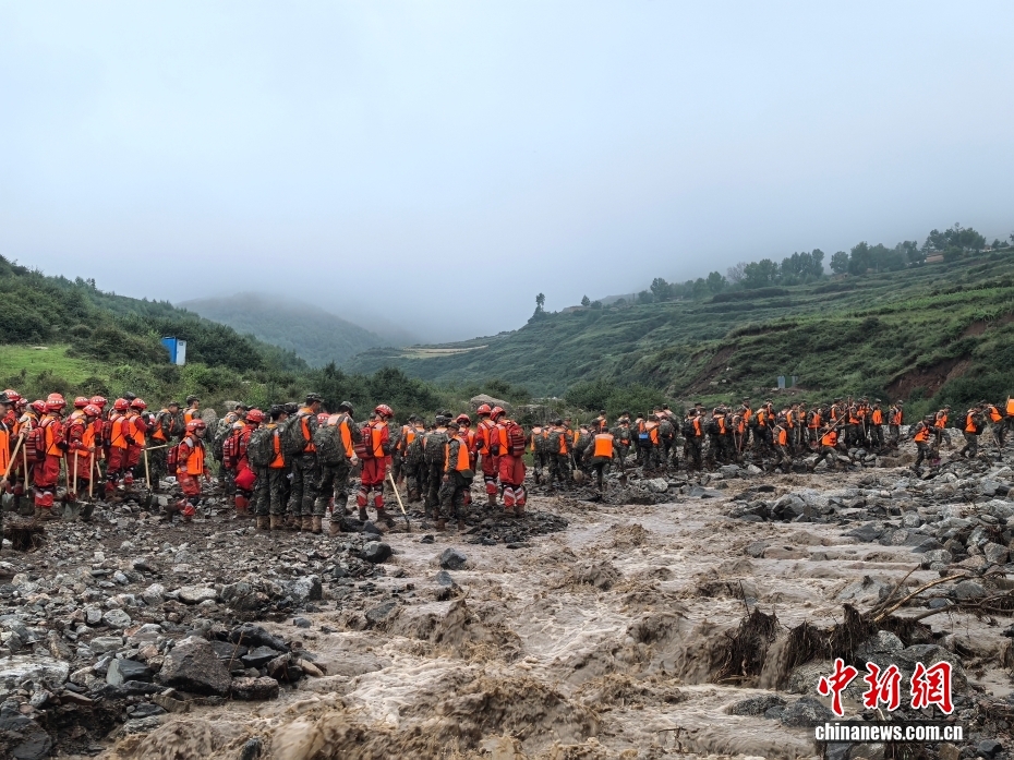8月8日,武警甘肅總隊機動支隊官兵挺進災(zāi)區(qū)甘肅省蘭州市榆中縣馬坡鄉(xiāng)舊莊溝村展開救援。劉昆 攝