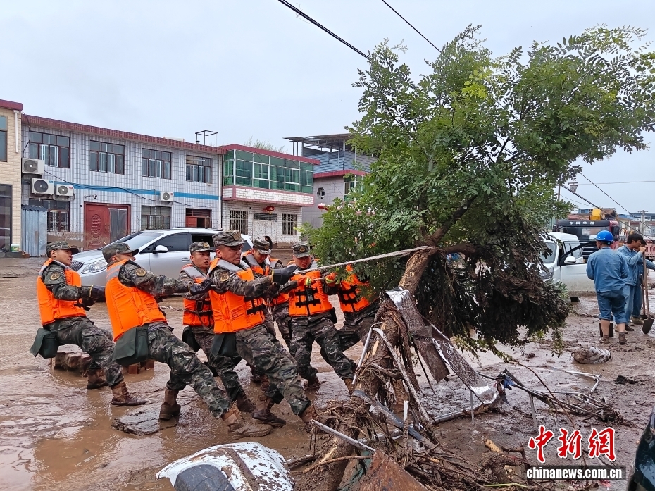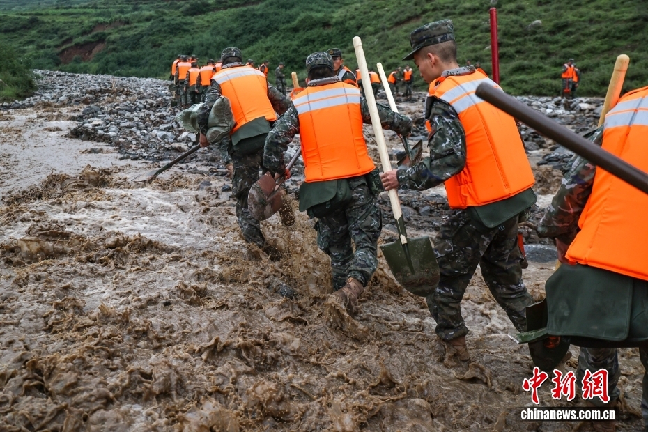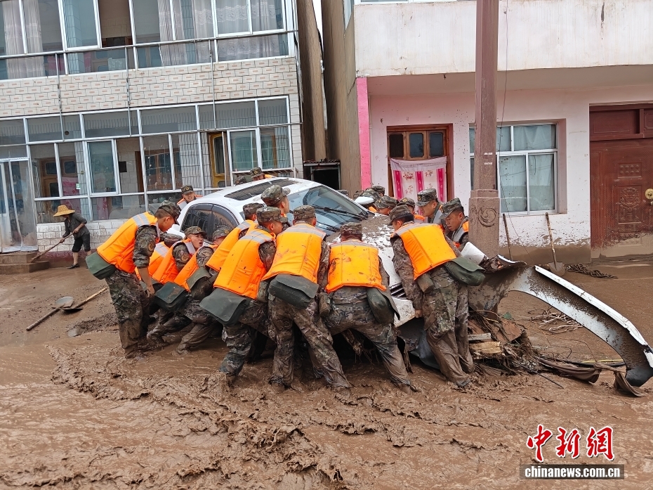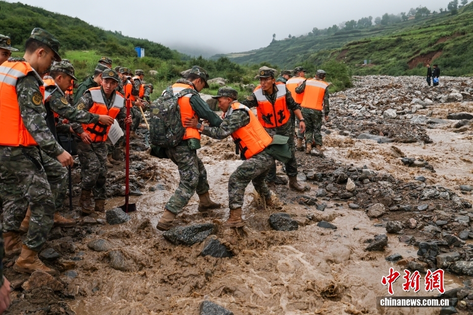 截至8日晚,武警甘肅總隊投入396名兵力開展道路清淤、人員搜救、搬運物資等救援行動,共轉(zhuǎn)移群眾171人、搜救被困群眾5人、救治受傷群眾2人、清理危房6處、轉(zhuǎn)移受損車輛12輛,累計清理淤泥、山石700余方,搜索河道6公里、搶通道路2300米。圖為8月8日,武警甘肅總隊機動支隊官兵挺進災(zāi)區(qū)甘肅省蘭州市榆中縣馬坡鄉(xiāng)舊莊溝村展開救援。劉昆 攝