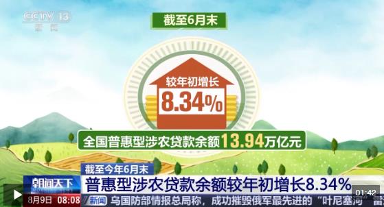截至6月末,全國普惠型涉農貸款余額13.94萬億元,較年初增長8.34%;全國糧食重點領域貸款余額5.1萬億元,較年初增長13.5%。今年1-6月全國新發(fā)放的普惠型涉農貸款平均利率同比下降0.61個百分點,繼續(xù)保持下降趨勢。