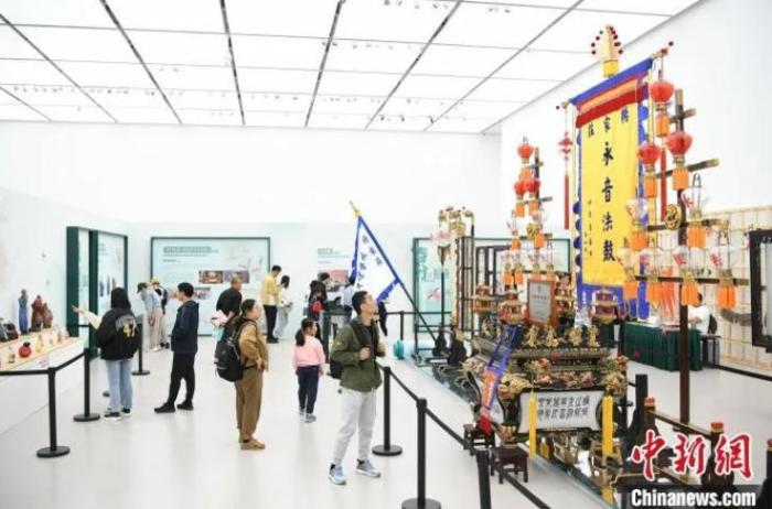 2024京津冀非物質(zhì)文化遺產(chǎn)聯(lián)展上,觀眾參觀津門法鼓·楊家莊永音法鼓。中新社記者 佟郁 攝
