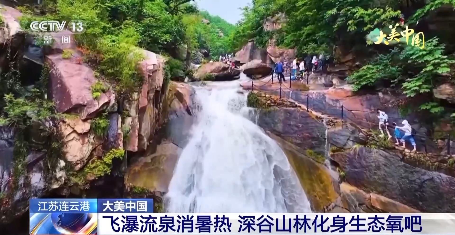 眼下,在江蘇連云港漁灣,滿(mǎn)眼青翠與潺潺流水的山澗成了生態(tài)氧吧,眾多市民在山水間消解暑熱、愜意納涼。