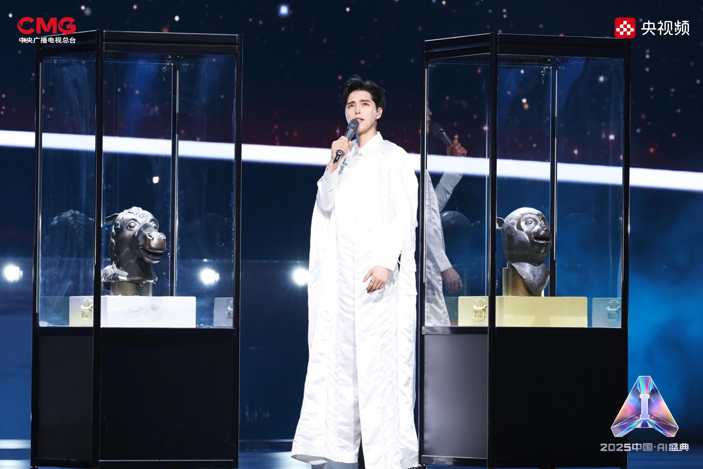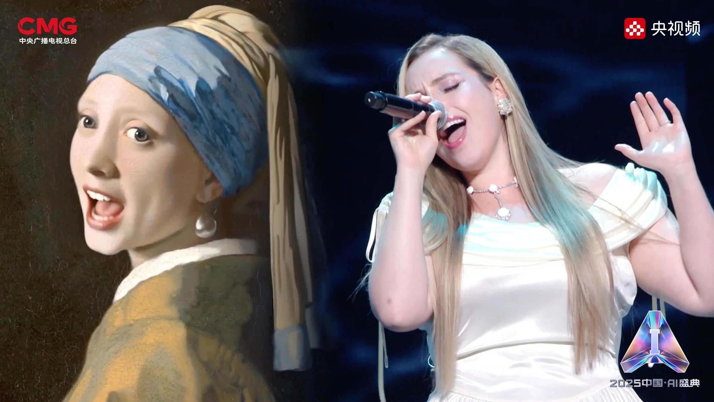相AI相生,是藝術(shù)想象的無限延展。在AI技術(shù)的賦能下,沉睡的文物重獲新生:圓明園“十二獸首”(復(fù)制品)聚首盛典舞臺(tái),他們化身十二樂師與歌手阿云嘎共同演繹《浮光·十二獸首歸來》,向世界展現(xiàn)東方文化藝術(shù)的魅力;《戴珍珠耳環(huán)的少女》在MiniMax海螺(Hailuo02)視頻模型的驅(qū)動(dòng)下翩然起舞,與歌手Grace Kinstler隔空對(duì)唱《This Is Me》;虛擬偶像“星瞳”與歌手黃齡突破次元壁,浪漫演繹金曲《玫瑰玫瑰我愛你》;根據(jù)歌手張英席、石倚潔、蔡程昱照片生成的數(shù)字人將與“本尊”同臺(tái)獻(xiàn)唱,以中、英、意等語言詮釋經(jīng)典歌劇歌曲《今夜無人入眠》;AIGC技術(shù)更讓兵馬俑開啟環(huán)球之旅,在東西方文明的對(duì)話中完成文化使者的使命。