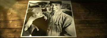 這是左權(quán)將軍懷抱著女兒,父女臉上露出微笑的動(dòng)態(tài)老照片。