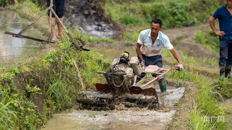 2024年一開春,田里的土壤開始黑得像墨一樣。到了快雙搶的時候,稻子像是憋著一股勁,給半山腰鋪上了厚厚的金色地毯,微風吹過的時候,稻浪滾滾煞是喜人。