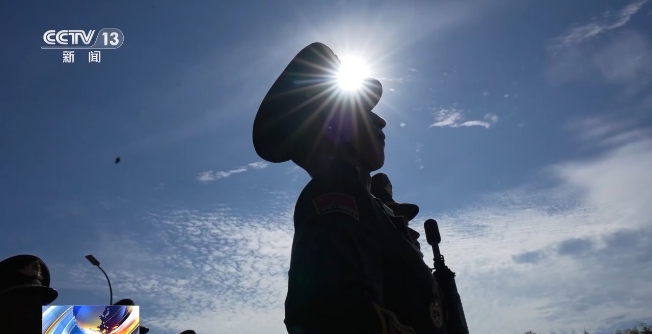 儀仗方隊參閱隊員 趙叢鶴:可以說是基準(zhǔn)兵里面的基準(zhǔn)兵。當(dāng)時很多人都不看好我,因為在外人看來需要身形壯碩一點,我比較偏瘦,身形壯碩一點他更能穩(wěn)住方隊的節(jié)奏。但是我就不信,別人說穩(wěn)不住節(jié)奏,我就使勁,我再使勁,我使的勁比別人多很多,我讓別人都能聽見我的步音。