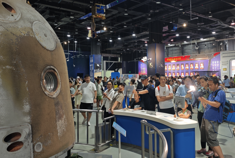 暑期的中國科技館人頭攢動,“神舟一號”返回艙實物吸引游客圍觀。(中國科技館供圖)