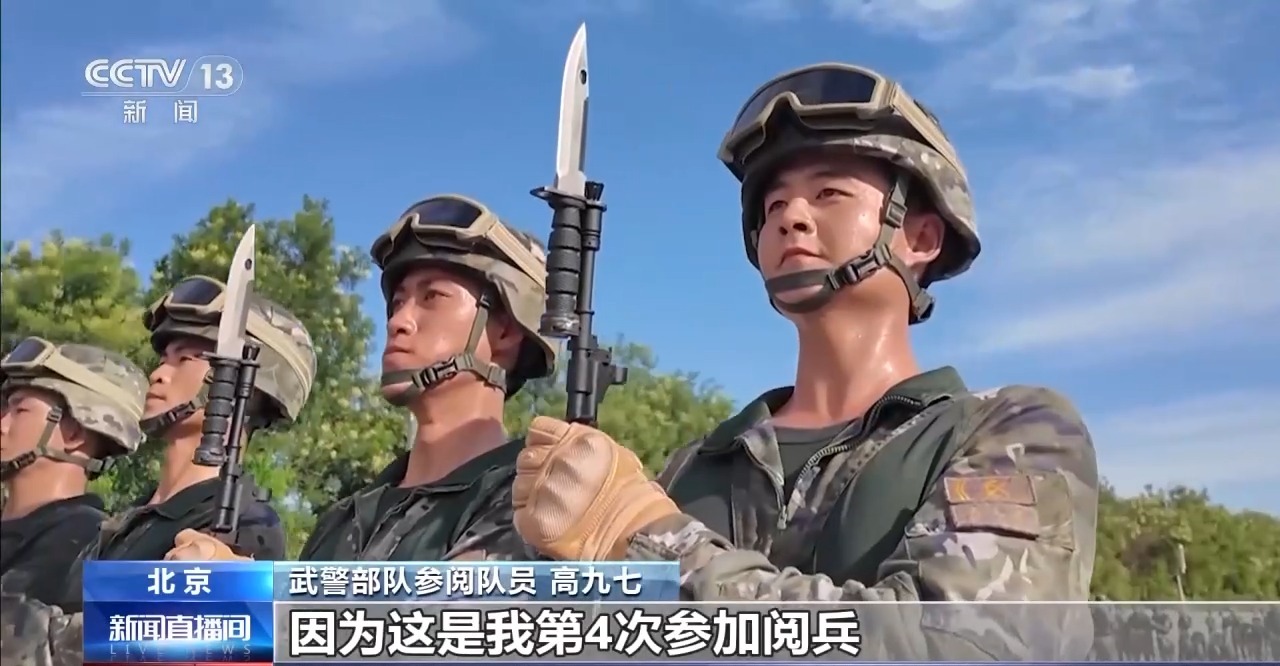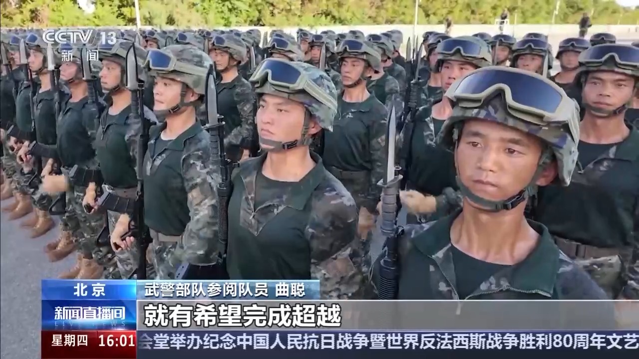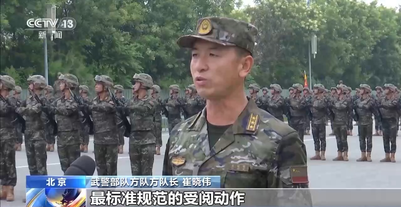 武警部隊方隊方隊長 崔曉偉:目前我們已經進入最后的沖刺階段,在紀念抗戰(zhàn)勝利80周年紀念日當天,以最昂揚的精神狀態(tài)、最標準規(guī)范的受閱動作,光榮地接受黨和人民檢閱,接受習主席檢閱。