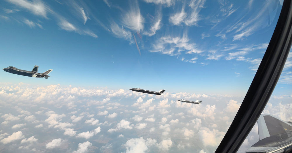 ↑這是殲擊機(jī)梯隊(duì)從北京城區(qū)上空飛過。