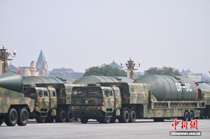 9月3日,紀念中國人民抗日戰(zhàn)爭暨世界反法西斯戰(zhàn)爭勝利80周年大會在北京隆重舉行。圖為核導彈第二方隊“東風-5C”液體洲際戰(zhàn)略核導彈駛過天安門廣場?!≈行戮W(wǎng)記者 趙文宇 攝