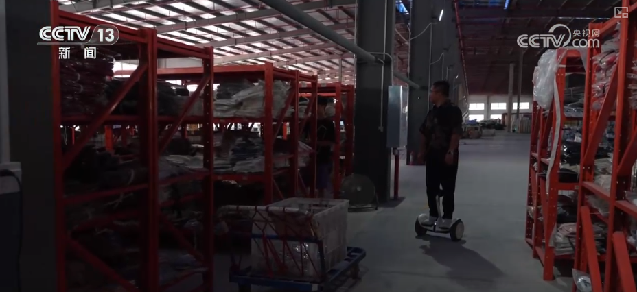 當(dāng)記者在天門服裝產(chǎn)業(yè)園里碰到費(fèi)文的時(shí)候,他正騎著電動(dòng)平衡車在庫(kù)房的貨架之間來(lái)回穿梭。