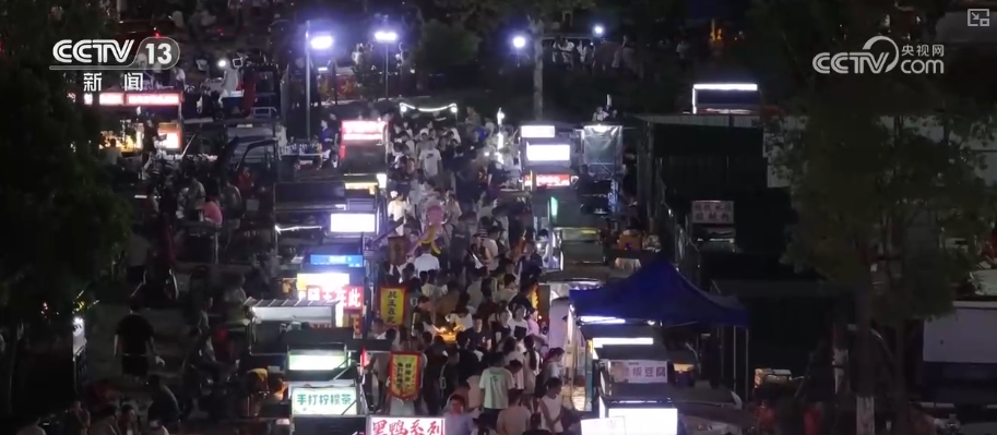 每天,當(dāng)夜幕降臨,天門北湖夜市就會(huì)準(zhǔn)時(shí)“開(kāi)攤”,300多個(gè)攤位依次亮起霓虹招牌,香氣繚繞,叫賣聲此起彼伏。記者行走其中,發(fā)現(xiàn)一個(gè)比夜市更引人注目的一個(gè)現(xiàn)象,就是穿梭其中的年輕父母格外多,還有不少二孩甚至是三孩家庭。