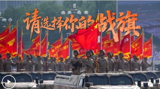 80面抗戰(zhàn)英模部隊(duì)榮譽(yù)旗幟組成戰(zhàn)旗方隊(duì),