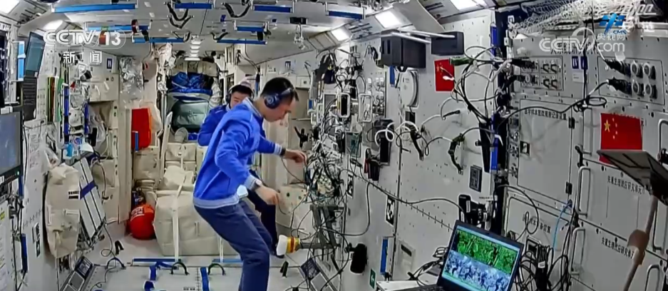 在健康維護與保障方面,乘組完成了質(zhì)量測量、聽力測試等多項醫(yī)學(xué)檢查,積極進行身體鍛煉,并利用神經(jīng)肌肉刺激儀進行肌肉放松與萎縮防護,對抗失重生理效應(yīng)。