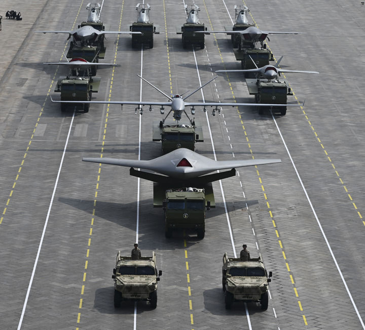 ↑9月3日,紀念中國人民抗日戰(zhàn)爭暨世界反法西斯戰(zhàn)爭勝利80周年大會在北京隆重舉行。這是空中無人作戰(zhàn)方隊接受檢閱。