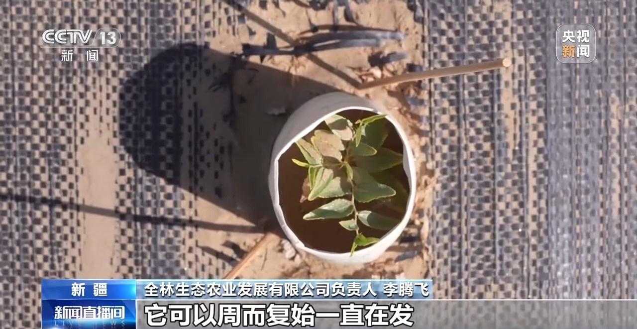 全林生態(tài)農業(yè)發(fā)展有限公司負責人 李騰飛:沙塵暴這種摧殘之下,它可以周而復始一直在發(fā),只要它的根系不死,所以說我們稱它為“苗堅強”。
