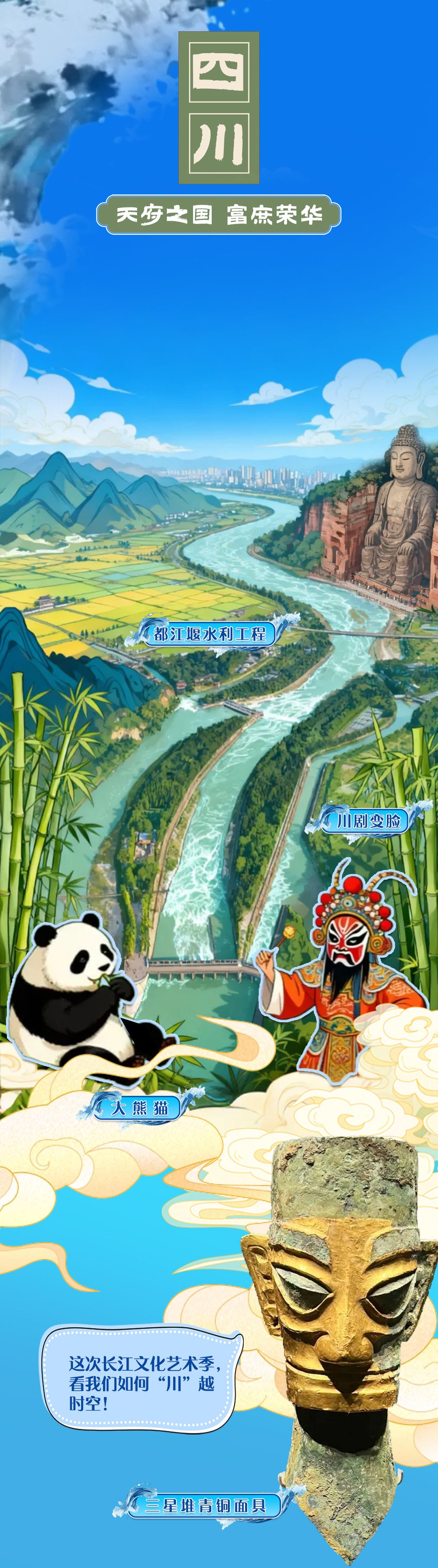 溯流而上,聽曾侯乙編鐘奏響千年清音,看三星堆神樹閃耀古蜀智慧;與熊貓漫步蜀地竹林……今天(9月12日),2025長江文化藝術季即將在武漢盛大啟幕,讓我們跟著沿江各地的國寶一起共赴這場跨越山河的藝術盛宴!
