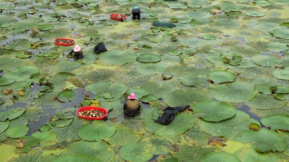 眼下,江蘇省泰州市姜堰區(qū)顧高鎮(zhèn)申俞村芡實進(jìn)入成熟期,種植戶正抓緊采摘成熟的頭茬芡實。