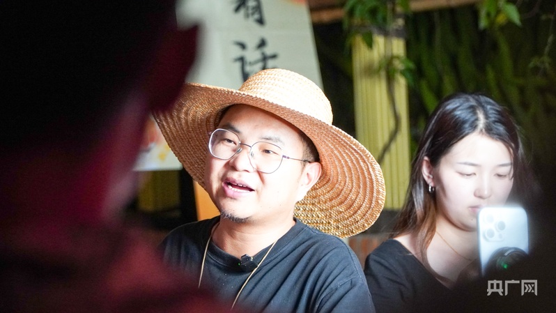 知名“三農”主播曲靖老村長正在老街直播(央廣網(wǎng)記者 魏文青 攝)