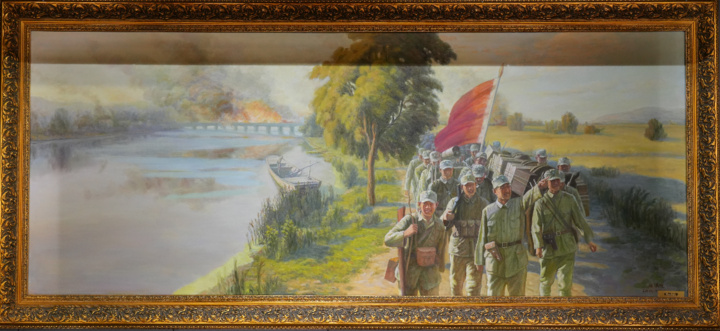 展示運(yùn)河支隊(duì)爆破運(yùn)河大橋的油畫《凱旋》