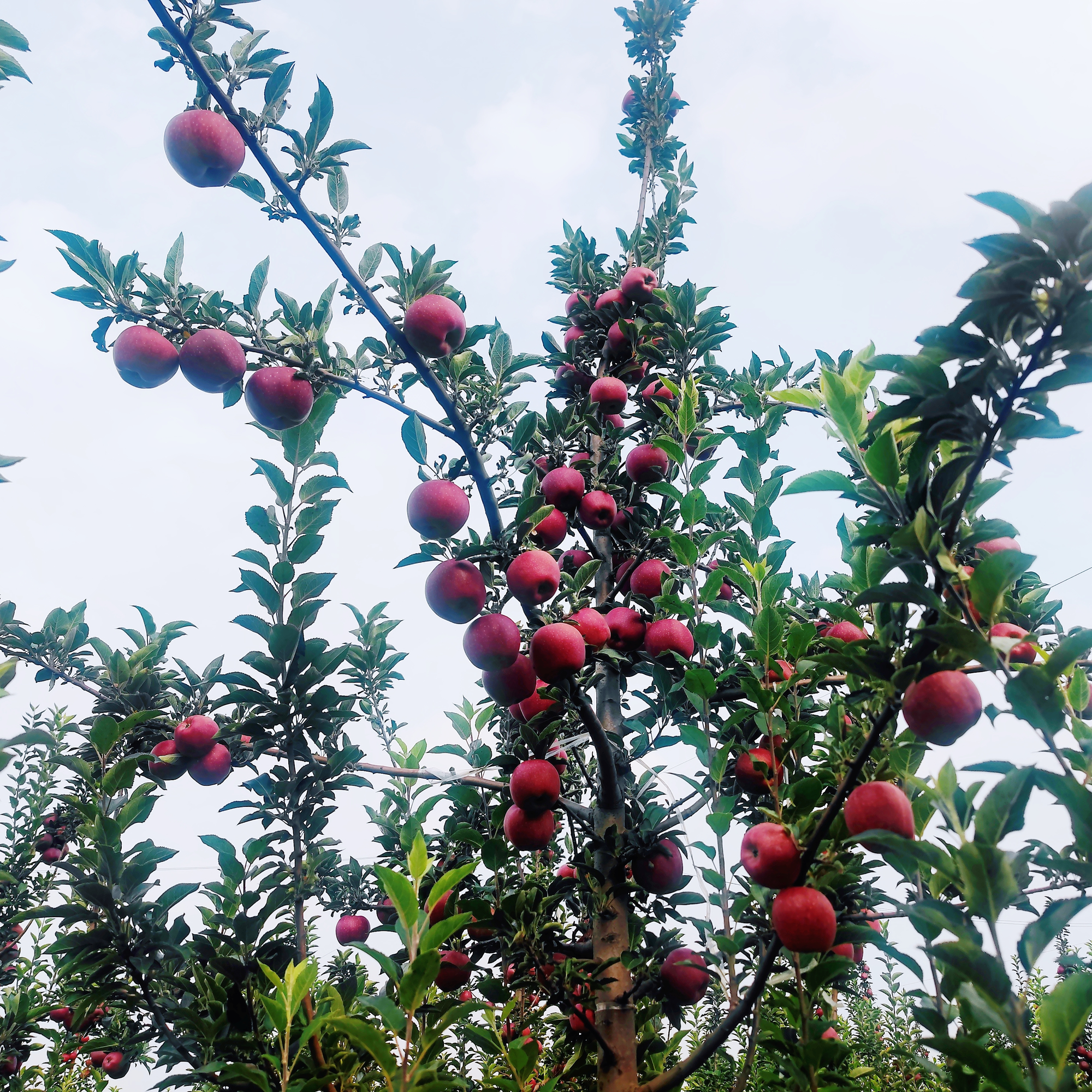 蘋果樹上掛滿了紅彤彤的果實(昔陽融媒供圖)