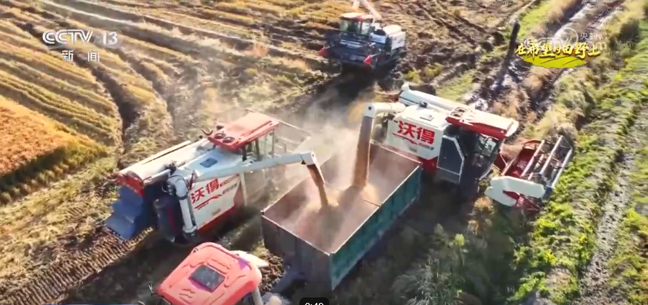 在綏濱縣新富鄉(xiāng)的稻田里,多臺(tái)現(xiàn)代化收割機(jī)正在緊張作業(yè)。伴隨著機(jī)器的轟鳴聲,一排排稻稈被快速卷入收割機(jī),經(jīng)過(guò)脫粒、篩選等工序,飽滿(mǎn)的稻谷源源不斷地從出糧口傾瀉而出,裝入一旁等候的運(yùn)輸車(chē)輛中。
