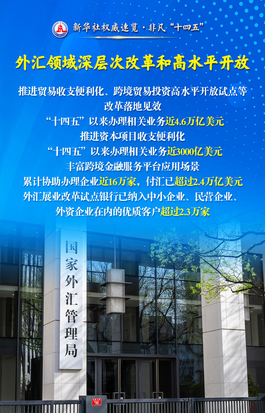 22日舉行的“高質(zhì)量完成‘十四五’規(guī)劃”發(fā)布會上,中國人民銀行、金融監(jiān)管總局、中國證監(jiān)會、國家外匯局介紹“十四五”時(shí)期金融業(yè)發(fā)展成就:金融體制改革全面深化,金融強(qiáng)國建設(shè)邁出堅(jiān)實(shí)步伐,資本市場健康穩(wěn)定發(fā)展的態(tài)勢持續(xù)形成并不斷鞏固,外匯領(lǐng)域穩(wěn)步推進(jìn)高水平開放……跟隨海報(bào),一起了解。