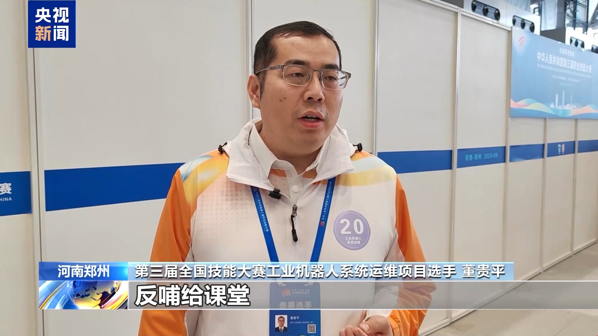 第三屆全國技能大賽工業(yè)機器人系統(tǒng)運維項目選手 董貴平:能夠把學(xué)到的一些實操技能以及理論知識,反哺給課堂,提升學(xué)生的理論儲備以及實操的技能。