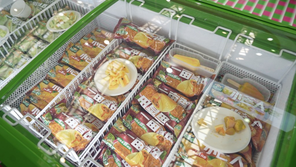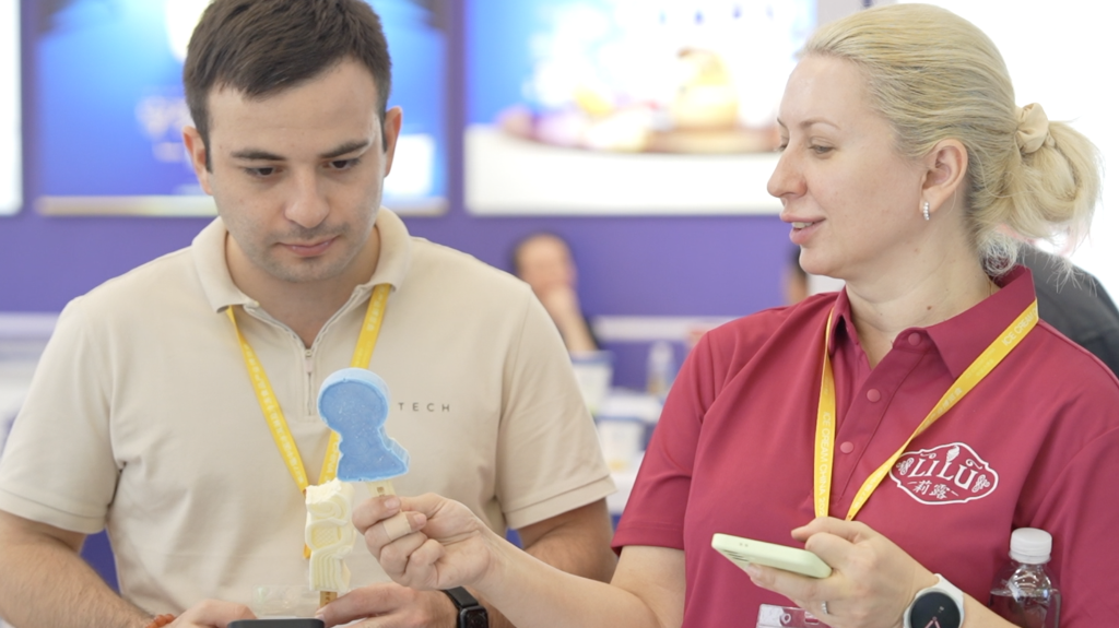 在東北大板品牌展區(qū),蜜瓜、芒果、百香果造型的水果味冰淇淋吸引了眾多客商品嘗,該系列產(chǎn)品遠(yuǎn)銷新西蘭、加拿大、馬來西亞、新加坡等國(guó)家和地區(qū)。