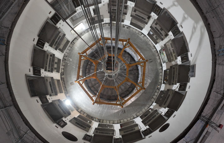 這是2025年10月1日在安徽合肥未來大科學(xué)城緊湊型聚變能實驗裝置(BEST)建設(shè)現(xiàn)場拍攝的成功落位安裝的杜瓦底座(無人機照片)。新華社記者 周牧 攝